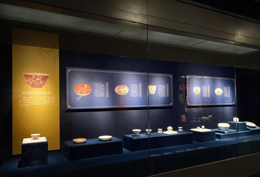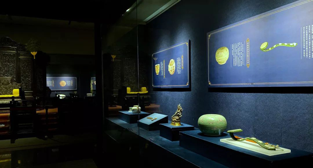 展廳構(gòu)成要素用最純粹的現(xiàn)代形式設(shè)計(jì)語言敘述一個(gè)城市歷史沉淀和人文風(fēng)貌氣象,讓歷史文化的厚重感、清朝文化等在現(xiàn)代設(shè)計(jì)語言闡釋下,在現(xiàn)代展示手段的烘托中,得以淋漓盡致的表達(dá)。展廳色彩氛圍營造通過對此次展覽展陳大綱的理解,以及歷史背景的分析,再結(jié)合展出文物提煉出來色彩,力求與展出文物構(gòu)成和諧的色彩體系,突出展示皇室藝術(shù)品絕高的藝術(shù)造詣及奢華的審美風(fēng)向。